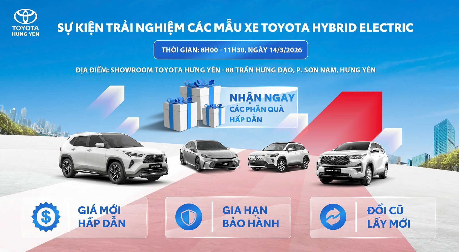 - Địa điểm: Showroom Toyota Hưng Yên (88 Trần Hưng Đạo, P. Sơn Nam, Tỉnh Hưng Yên)